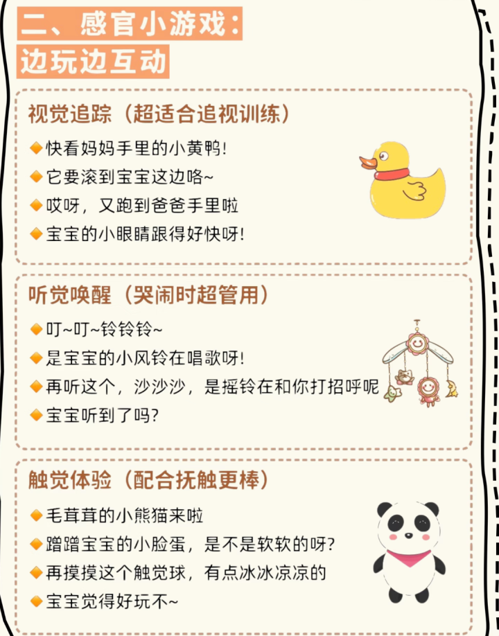 你还可以聊聊眼前的场景和感受,比如抱着他在窗边看风景:“今天外面的阳光好暖和呀,那棵大树上有只小鸟在唱歌,你听到了吗?”或者聊聊他的小表情:“宝宝刚才皱眉头了,是不是有点困了?还是哪里不舒服?”这种互动会让宝宝感受到自己的情绪被看见、被理解,对他建立安全感和情商发展特别有益。回忆和计划也是很好的话题,比如讲讲他昨天打疫苗勇敢的样子,或者明天带他去姥姥家能看到小狗。甚至可以给他念念绘本、说说你小时候的趣事,语气温柔、表情丰富、语速放慢一些,你的声音就是他最好的白噪音。